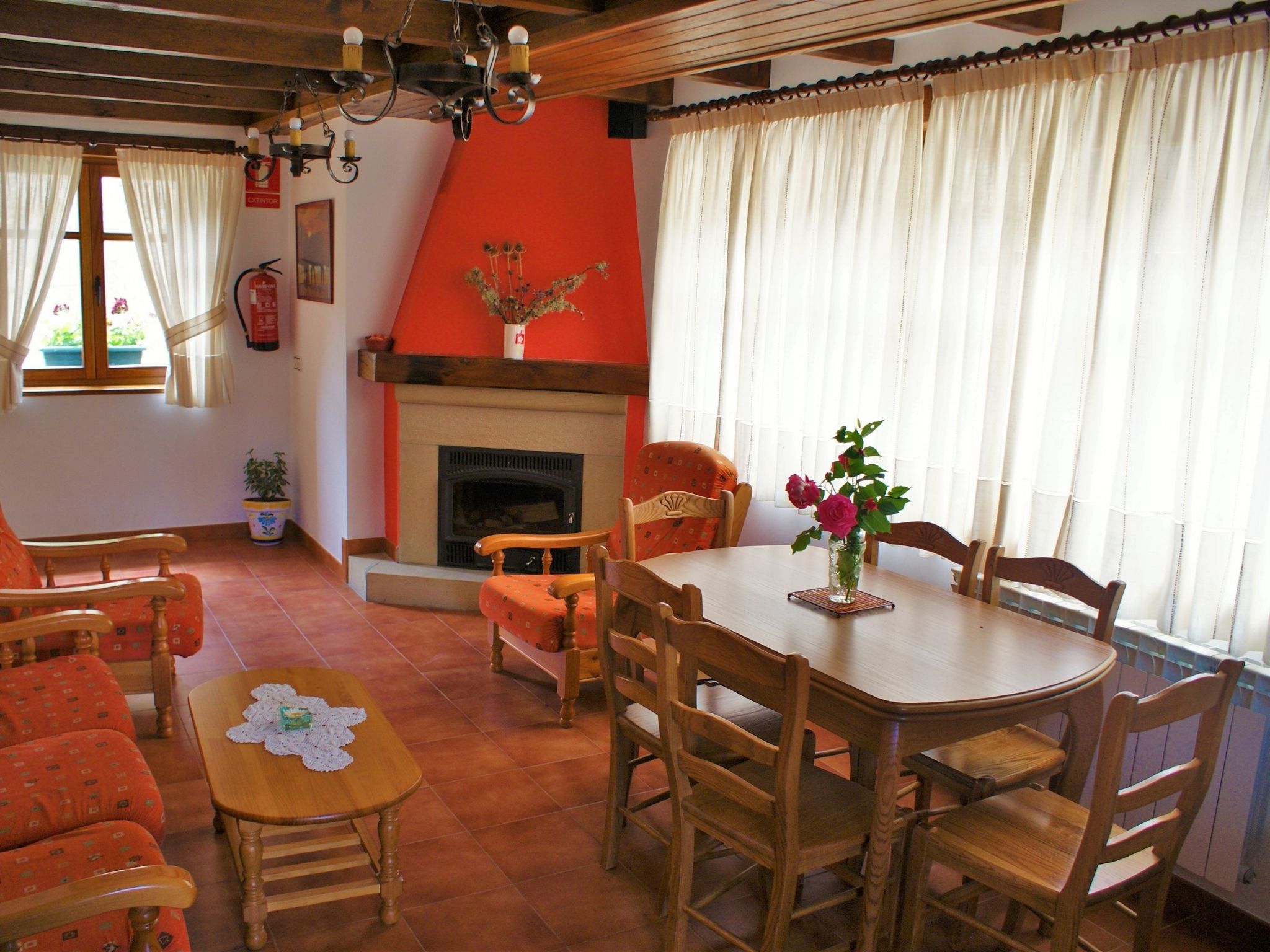 Un baño completo en cada planta y amplio salón-cocina con chimenea.
